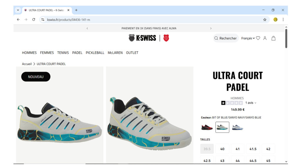 LACOSTE a sorti une version spécifique Padel au printemps 2025 pour compléter la gamme, sans oublier que l’EX numéro 1 Français tout comme le Big Little Boss de NICE SMASH 06, ont choisi en 2023 les AGLT ULTRA ci dessous